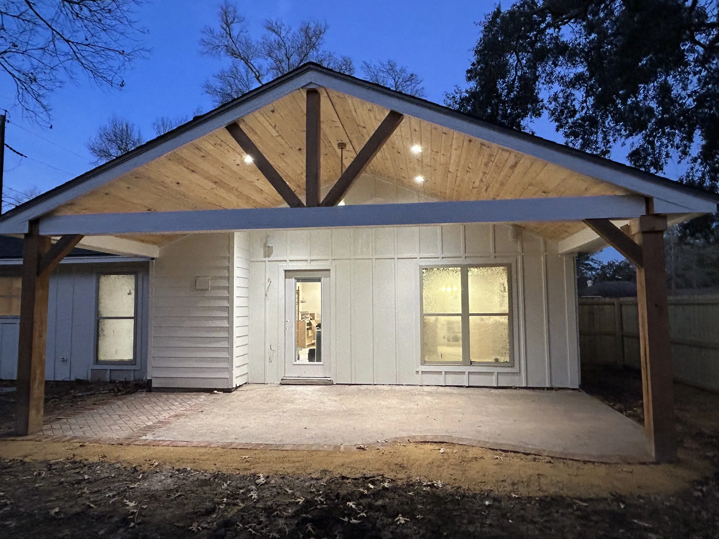 Experience seamless indoor-outdoor living with a Tied-in Pavilion: Where the comforts of home meet the serenity of nature, creating a captivating space for every moment, rain or shine!